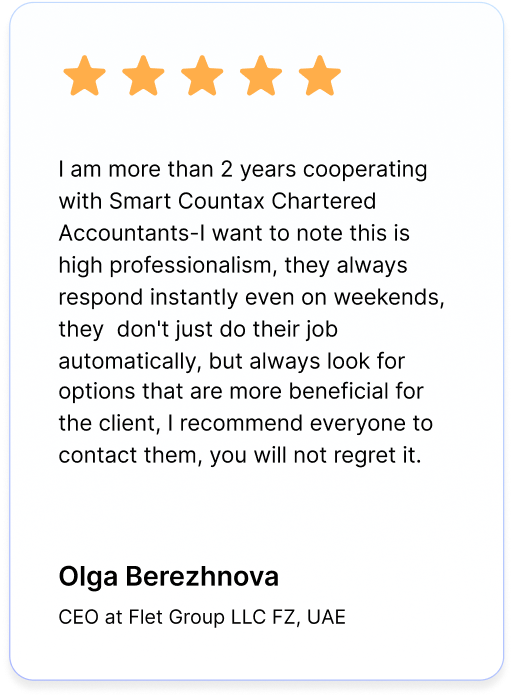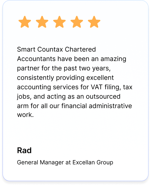 Smart Countax Chartered Accountants have been an amazing partner for the past two years, consistently providing excellent accounting services for VAT filing, tax jobs, and acting as an outsourced arm for all our financial administrative work. I highly recommend them to any company seeking headache-free financial assistance.